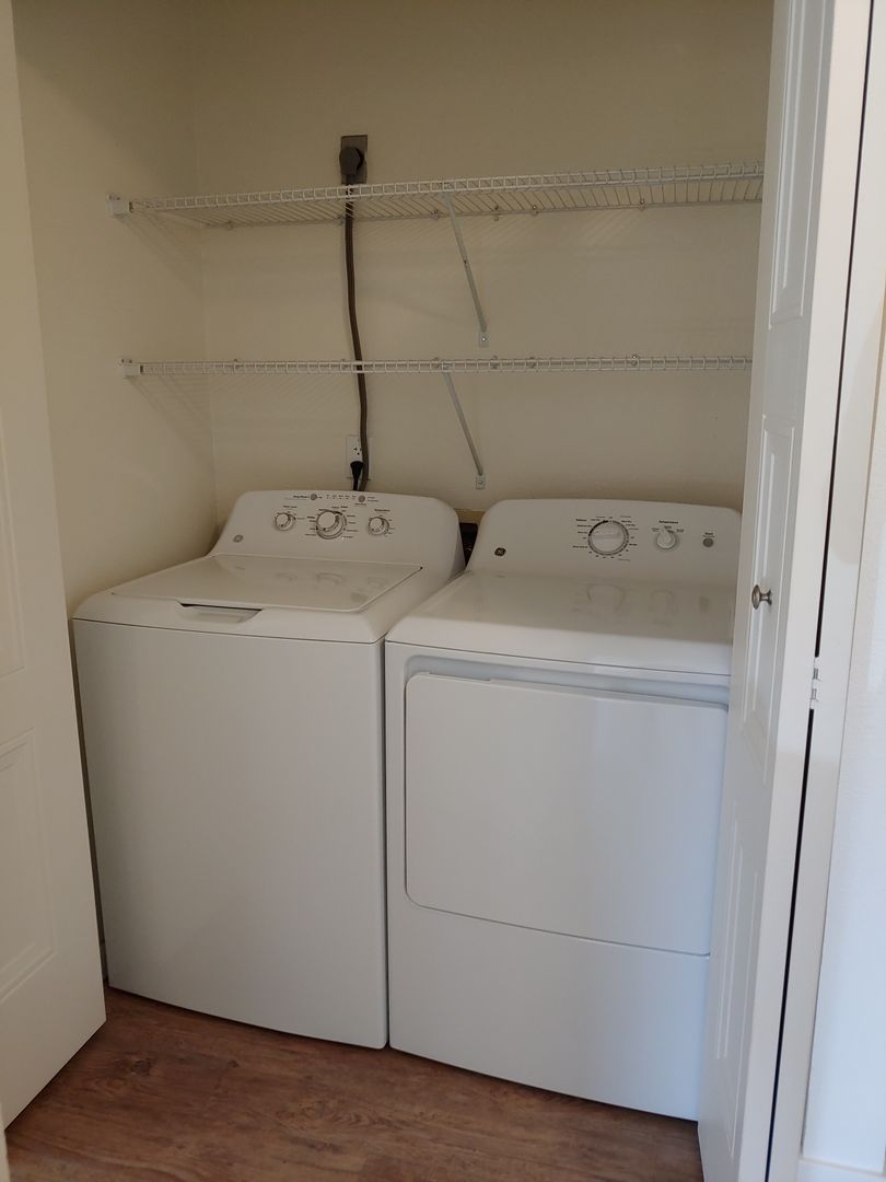 Our floor plans are designed with your comfort and enjoyment in mind. This apartment includes a full size in-unit washer and dryer, and dishwasher. All units have a balcony or patio with extra storage and a wood burning fireplace to cozy up to in the coming winter months.