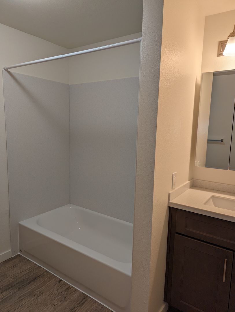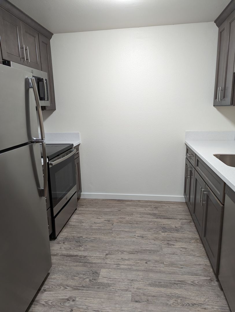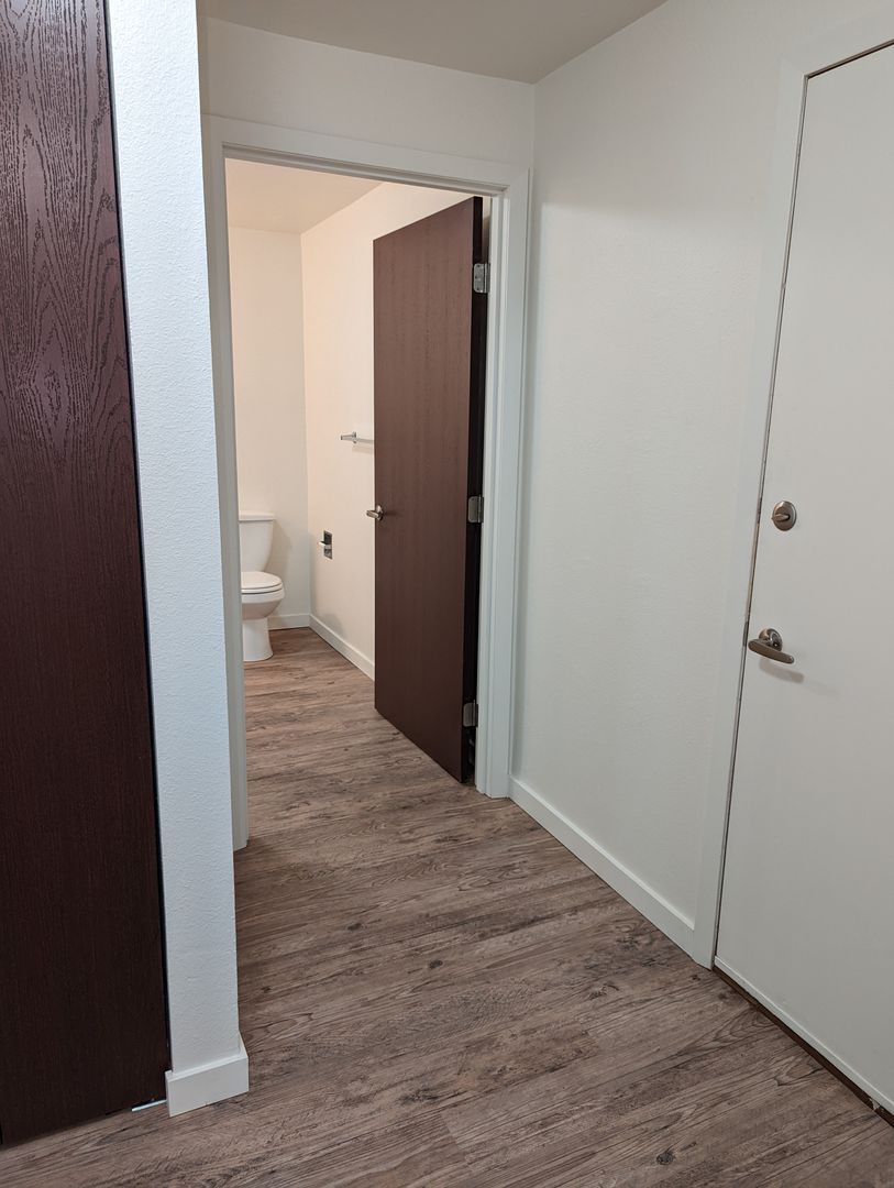 This unit is a more wheelchair friendly unit. It has a larger bathroom and kitchen, as well as door to bedroom.