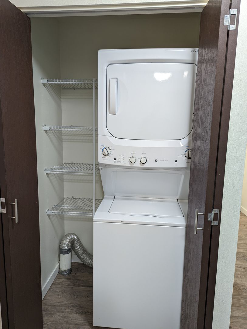 Our floor plans are designed with your comfort and enjoyment in mind. This apartment includes a full size in-unit washer and dryer, and dishwasher. All units have a balcony or patio with extra storage and a wood burning fireplace to cozy up to in the coming winter months.